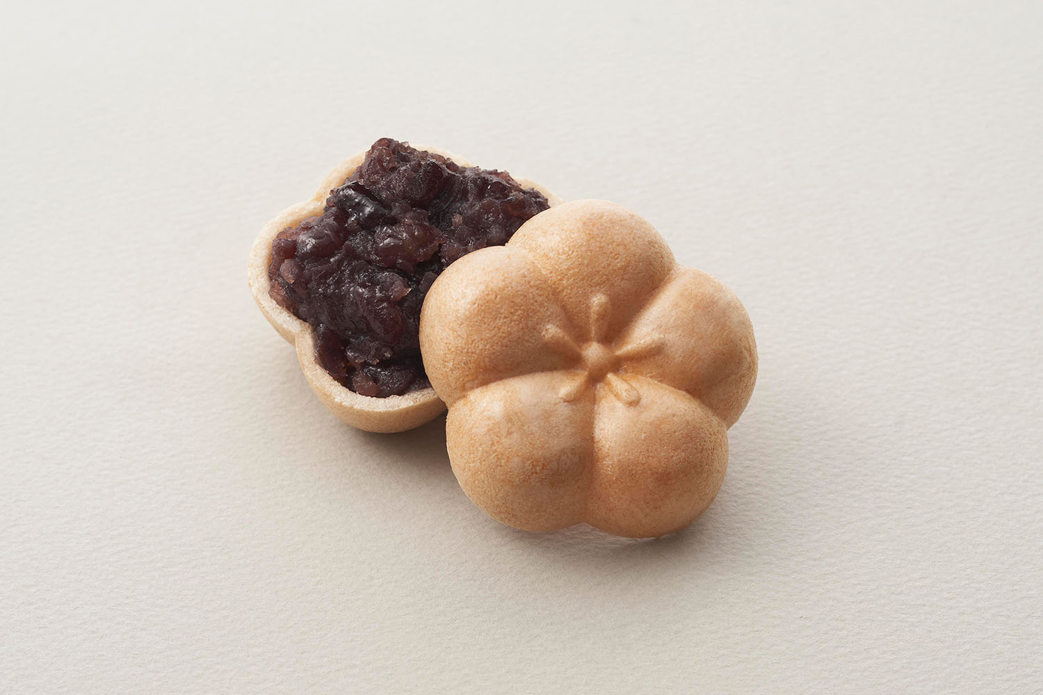 北海道産小豆「雅」を使用した当店自慢のつぶ餡を、愛らしい梅の最中で挟みました。ぱりっと香ばしい皮の風味と食感、ほどよい甘さの餡を絶妙に合わせています。