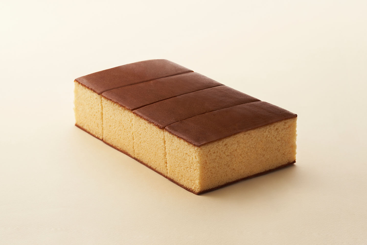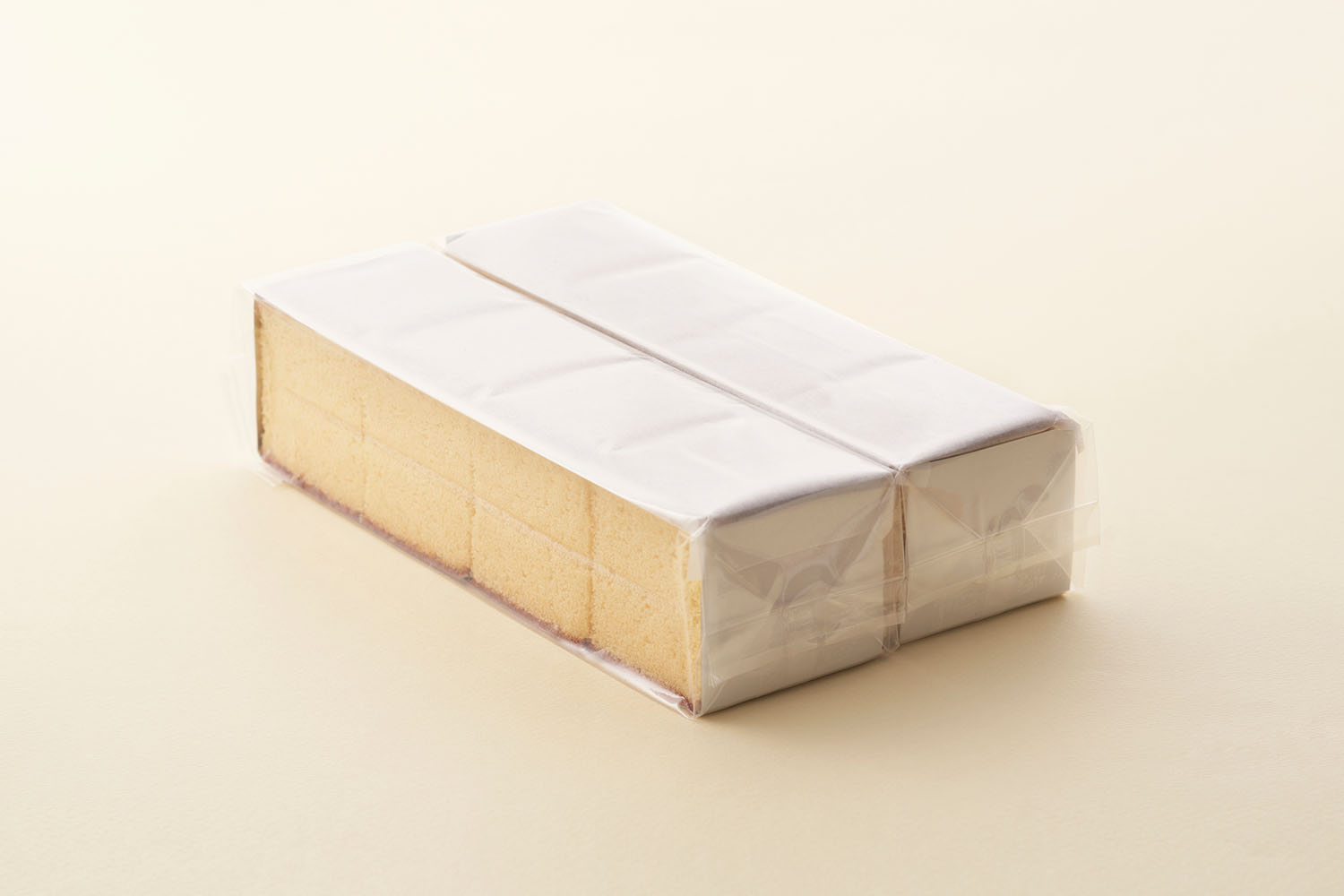お店の名前を冠したカステラは、底にざらめ糖のないタイプ。素材の味が生きた味わい、しっとりとした口当たり、上品な甘さをぜひご賞味ください。カステラは4切れにカットしてお包みしております。