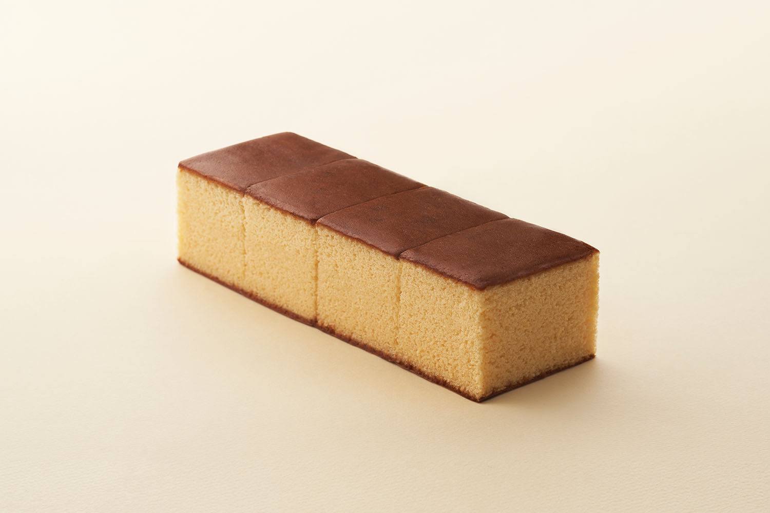 お店の名前を冠したカステラは、底にざらめ糖のないタイプ。素材の味が生きた味わい、しっとりとした口当たり、上品な甘さをぜひご賞味ください。カステラは4切れにカットしてお包みしております。