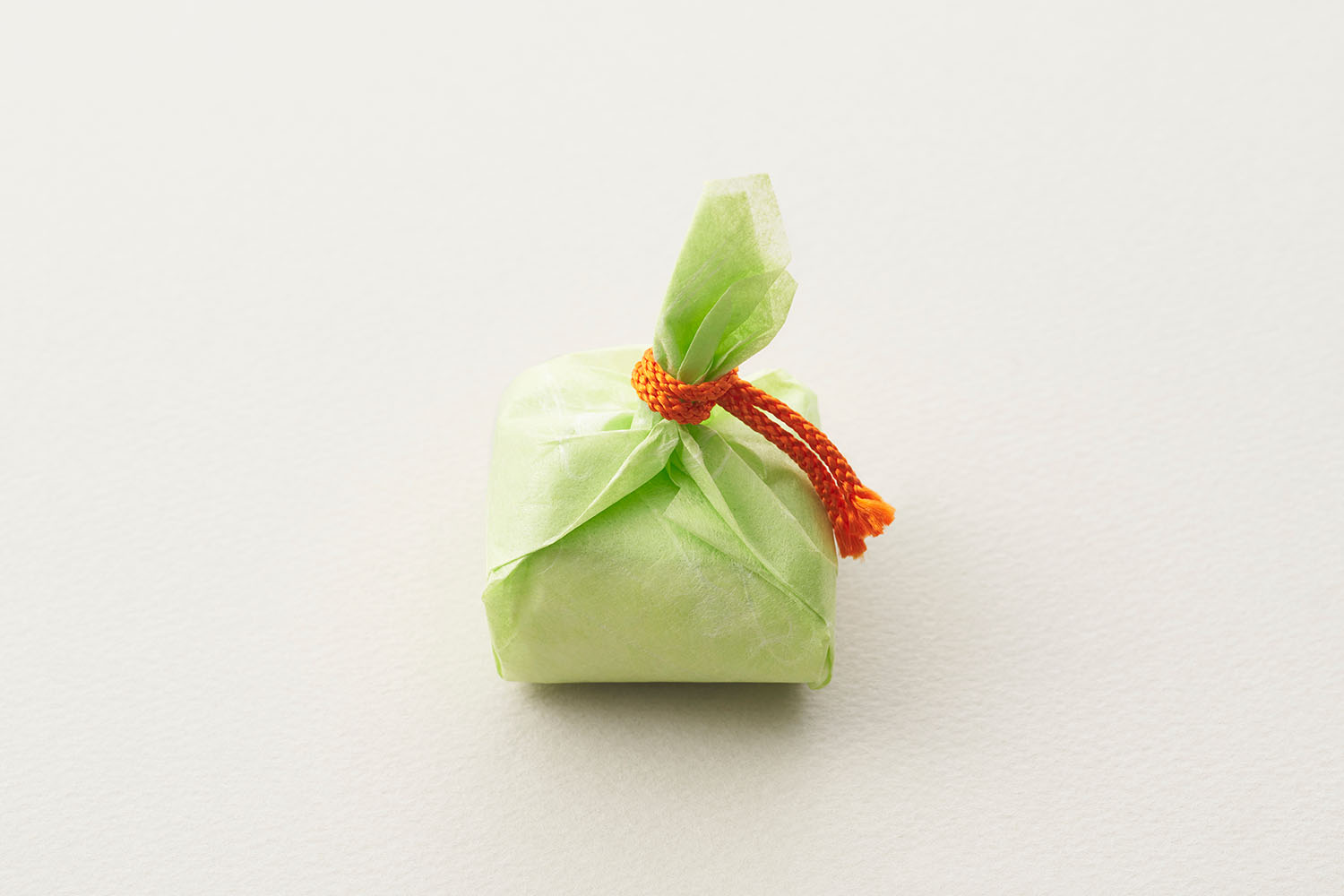福岡の歴史や街の魅力を表現した『高取物語』は、高取店の近くにある、茶の湯の名器として名高い「高取焼味楽窯」を題材にして生まれました。まんじゅうのなかの抹茶餡は、手亡豆に香り高い抹茶を加え、抹茶の風味と色合いを活かして上品に仕上げました。